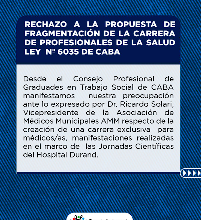Rechazo a la propuesta de Fragmentación de la Carrera de Profesionales de la Salud Ley Nº 6035 de CABA Desde el Consejo Profesional de Graduades [...]