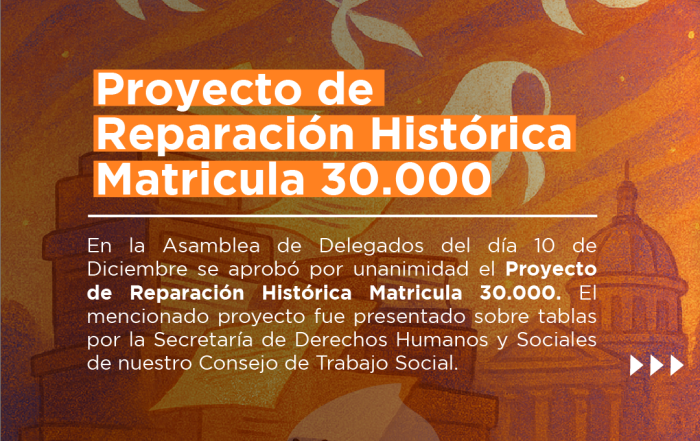 Proyecto de Reparación Histórica Matricula 30.000 En la Asamblea de Delegados del día 10 de Diciembre se aprobó por unanimidad el *Proyecto de Reparación Histórica [...]
