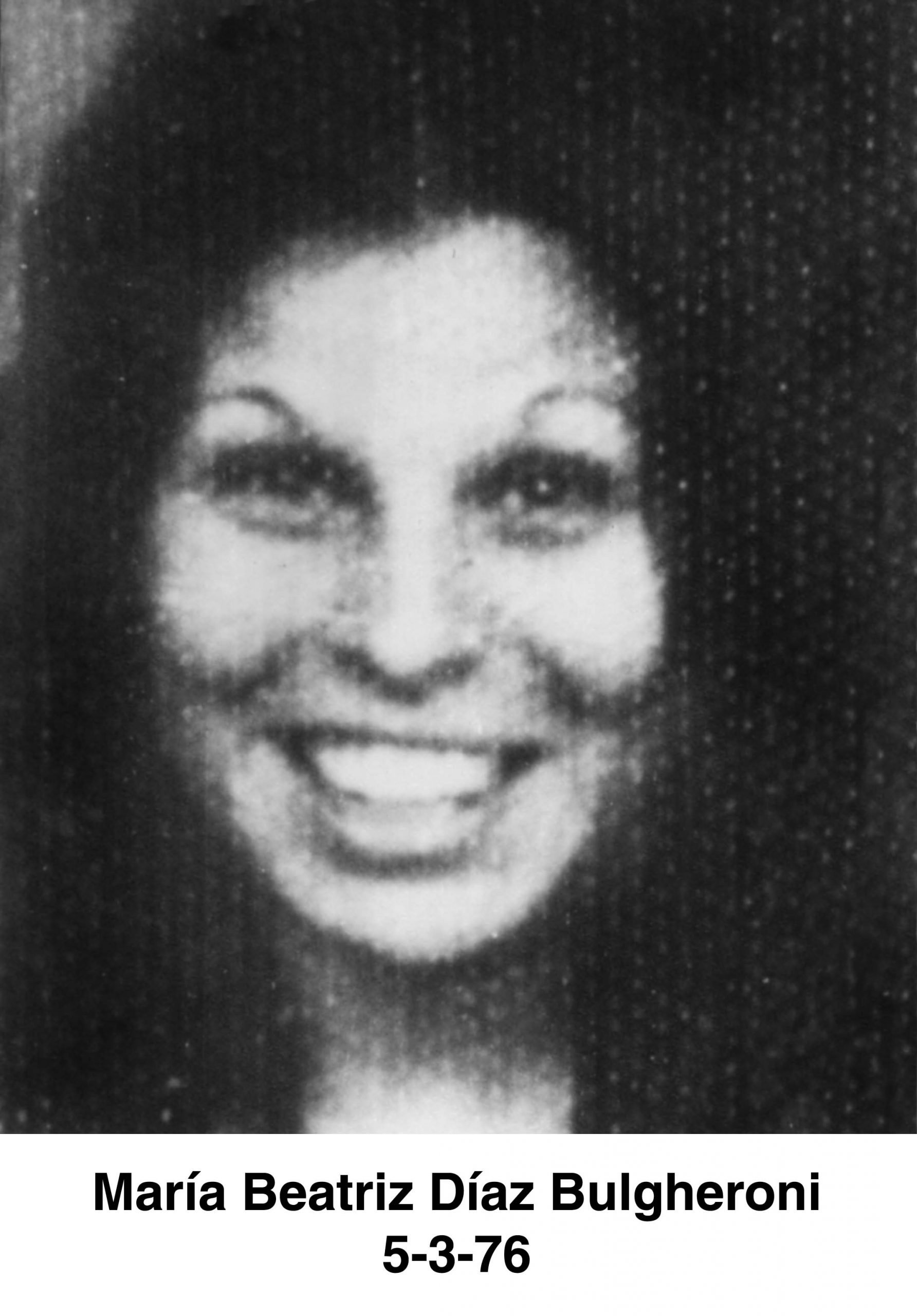 Díaz Bulgheroni, María Beatriz Edad: 25 años Fecha de nacimiento: 23/07/1951 Lugar de Nacimiento: Ciudad de Buenos Aires. LC: 6694280 Unidad Académica:Universidad de Buenos Aires Fecha del Secuestro: 05/03/1976 Lugar [...]