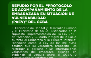 Repudio por el “Protocolo de acompañamiento de la embarazada en situación de vulnerabilidad (PAEV)” del GCBA