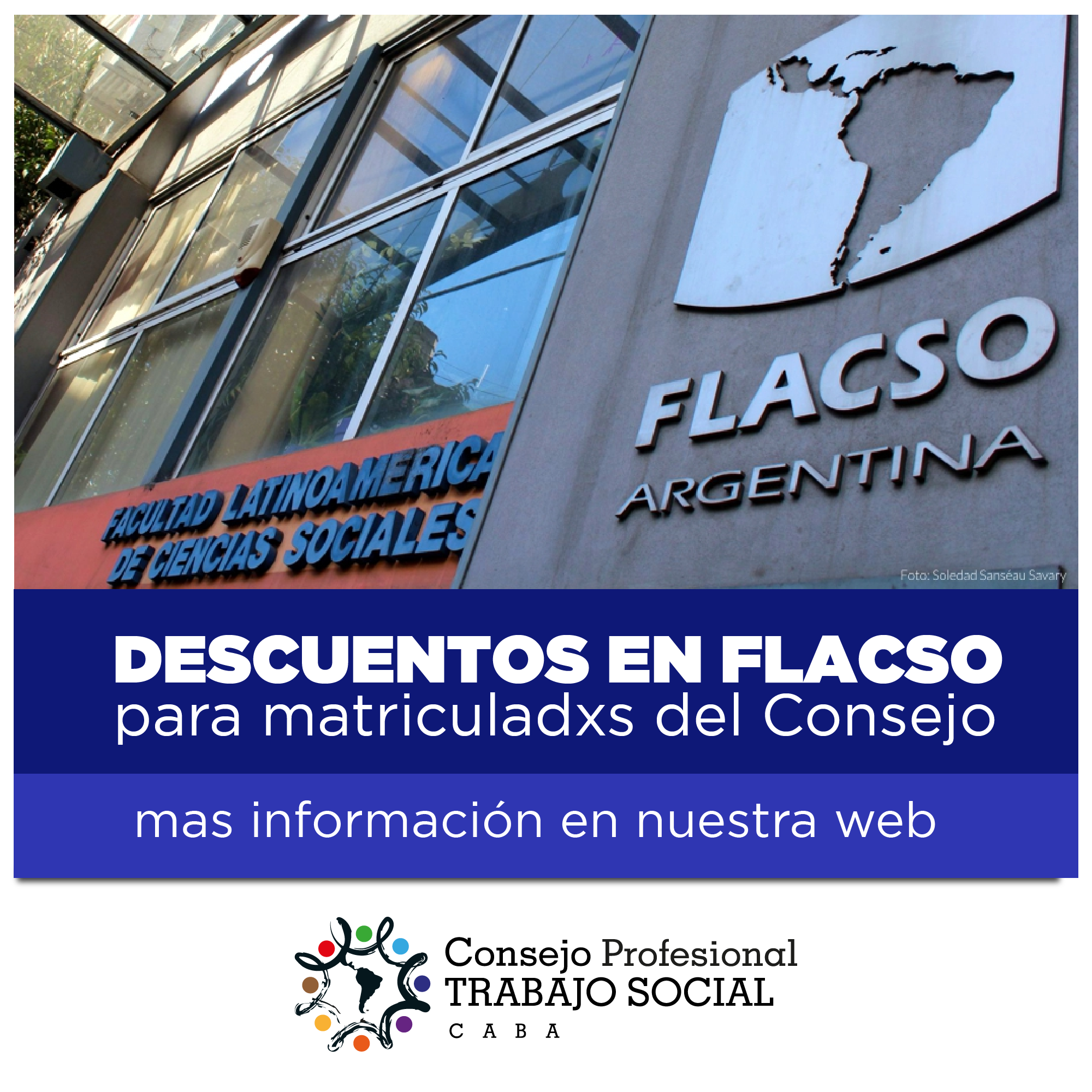 Estimadxs colegas, en función del reciente acuerdo firmado con FLACSO Argentina cumplimos en informarle las áreas que se comunicaron informando sobre los descuentos. Esperamos sean de interés.