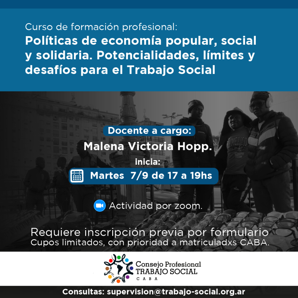 Curso de formación profesional: Políticas de promoción de la Economía Popular, Social y Solidaria. Potencialidades, límites y desafíos para la intervención del Trabajo Social en la Argentina actual